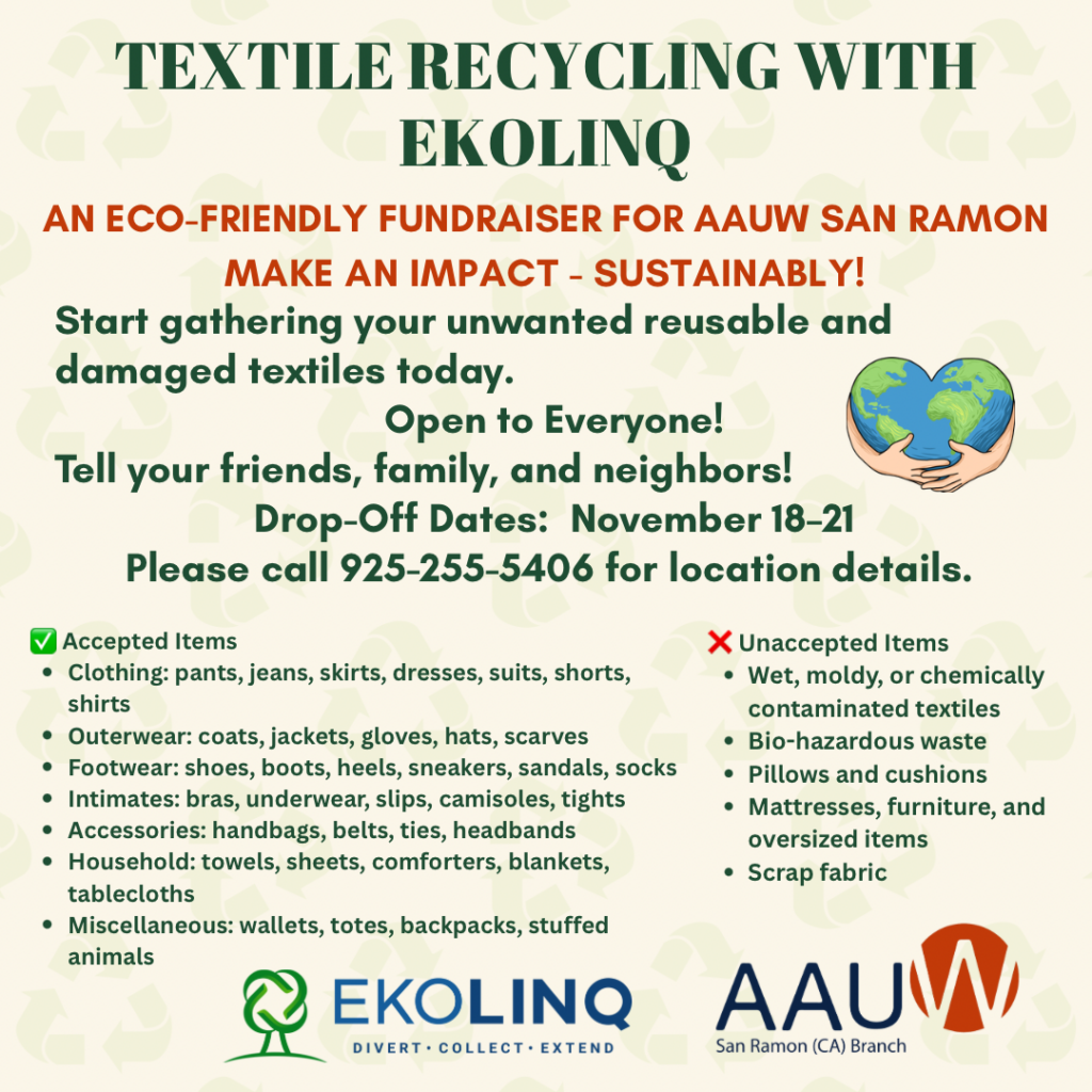 Please mention AAUW San Ramon when you call (925) 406-4867 or go online to make your reservation.