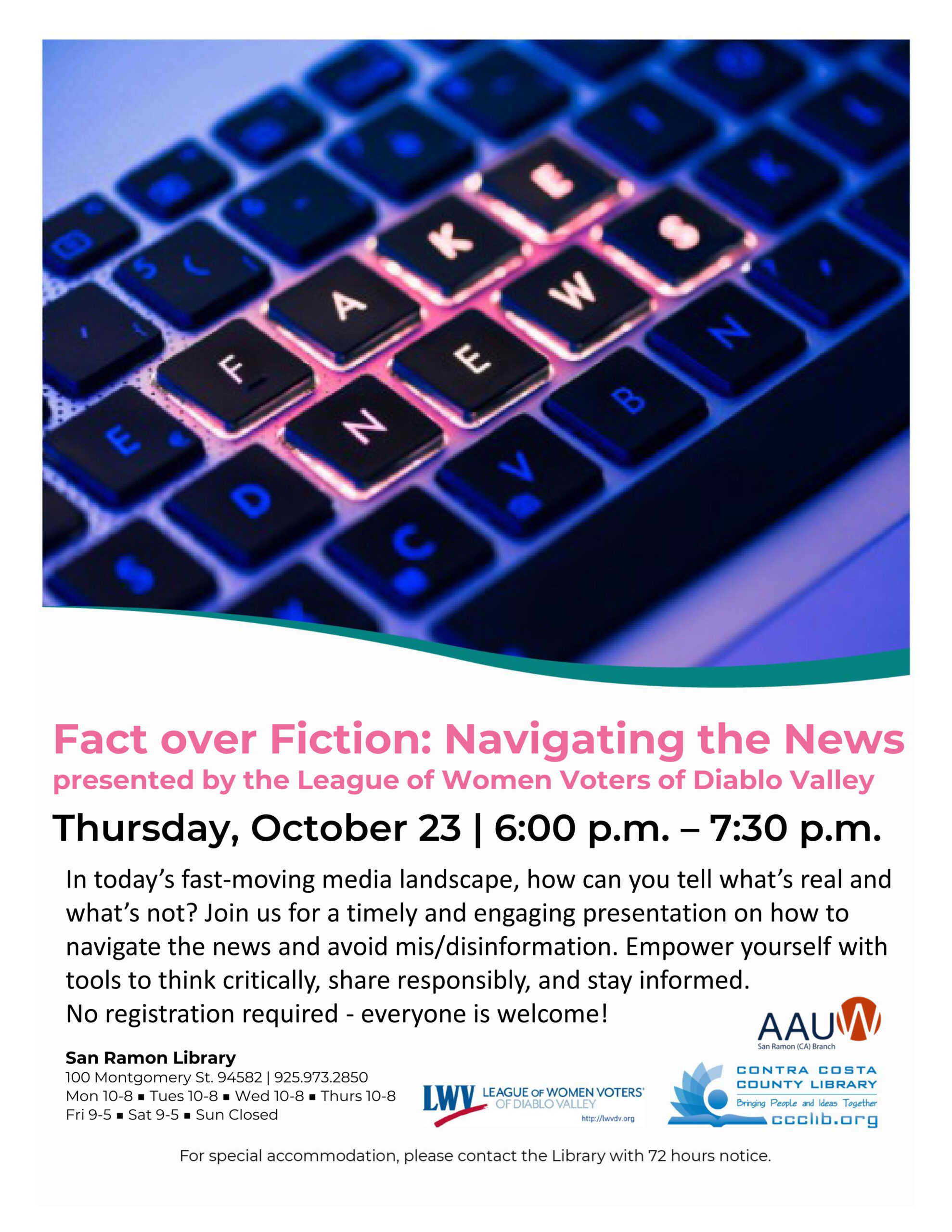 Join us for an eye-opening session presented by the League of Women Voters, where you’ll learn how to spot the difference between real and “fake” news.