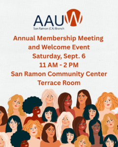 You’re invited to reconnect with your AAUW San Ramon friends and guests at our Annual Welcome Back Event!