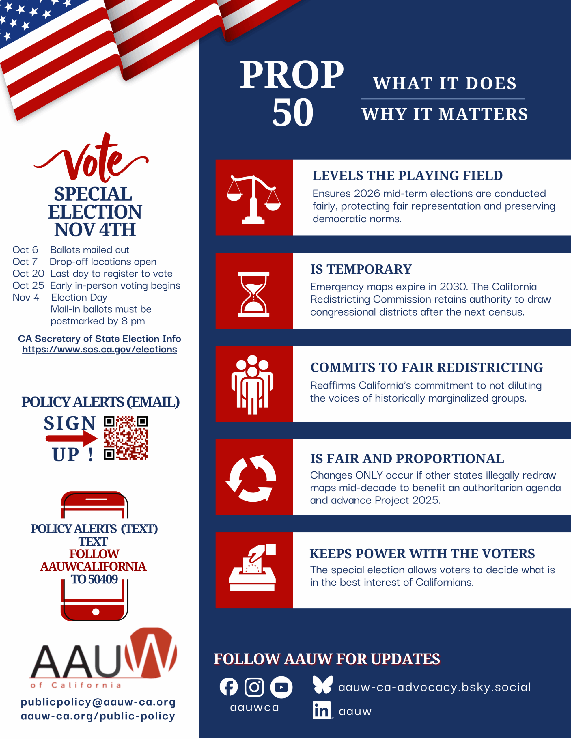 Such measures require a 2/3-majority vote, which is difficult to achieve, yet is critical to continue existing programs at the same funding level—so every vote counts! Measure Q aligns with the AAUW Public Policy initiative of providing equal access to quality public education for all students. We encourage you to read about Measure Q here and to vote on November 5.