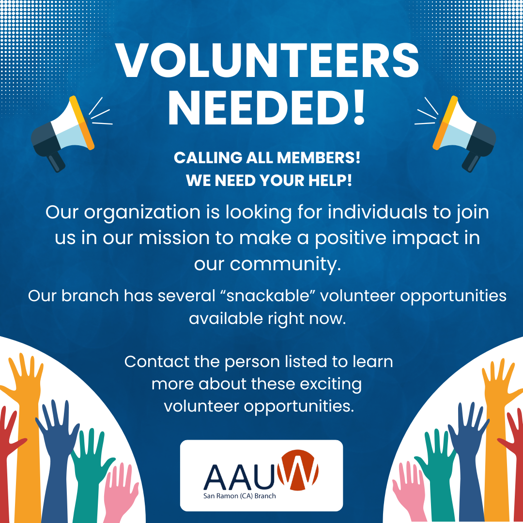 AAUW Danville-Alamo-Walnut Creek is seeking volunteers to help with the Quest Science Center exhibit on Tuesday, November 11 from 9:00 AM to 5:00 PM at the Danville Veterans Day Pop-up Museum event.